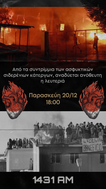 Μια κουβέντα & μια ιστορική αναδρομή στον θεσμό της δικαιοσύνης και της απονομής της (νέος ΠΚ). Η εκπομπή αποτελεί μια ένδειξη αλληλεγγύης στα φυλακισμένα συντρόφια μας αλλά και μια απεύθυνση σε όλα τα κρατούμενα που βρίσκονται αιχμάλωτα στα κελιά της δημοκρατίας.