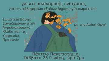 Το σωματείο στον κλάδο μας δεν είναι πλέον μια μακρινή μελλοντική εικόνα. Μας απομένει ένα μικρό βήμα ακόμη. Για αυτό (και για άλλους πολλούς λόγους) σας καλούμε όλους και όλες συναδέλφους/ισσες, φίλους/ες για γλέντι με σκοπό την κάλυψη των εξόδων δημιουργίας του Σωματείου.