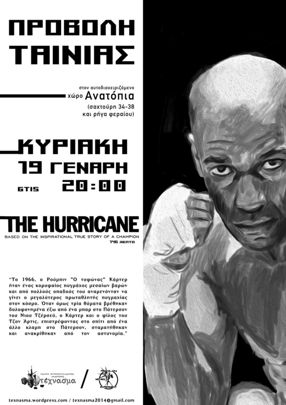 προβολή της ταινίας «The Hurricane» την κυριακή 19 γενάρη στις 20.00…
