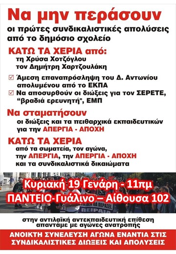 ενάντια στις Συνδικαλιστικές Διώξεις και Απολύσεις -