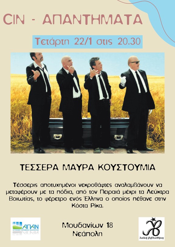 Προβολή ταινίας: Τέσσερα μαύρα κουστούμια