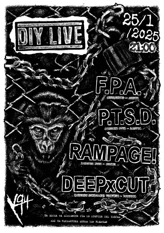 Το Σάββατο, 25 του Γενάρη, στήνουμε live μαζί με τους Rampage! από Αθήνα, τους P.T.S.D. από Λάρισα, τους DeepXCut από Γιάννενα και τους F.P.A. από Αθήνα. Ξεκινάει 21:00.