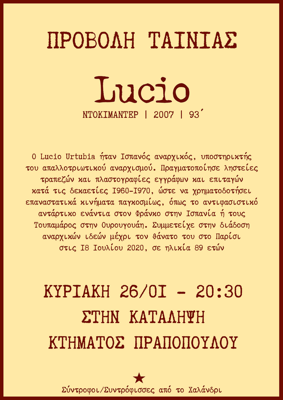 Ο Lucio Urtubia ήταν Ισπανός αναρχικός , υποστηρικτής του απαλλοτριωτικού αναρχισμού. Πραγματοποίησε ληστείες τραπεζών και πλαστογραφίες εγγράφων και επιταγών κατά τις δεκαετίες 1960 - 1970 , ώστε να χρηματοδοτήσει επαναστατικά κινήματα παγκοσμίως , όπως το αντιφαστιστικό αντάρτικο ενάντια στον Φράνκο στην Ισπανία ή τους Τουπαμάρος στην Ουρουγουάη. Συμμετείχε στην διάδοση αναρχικών ιδεών μέχρι τον θάνατο του στο Παρίσι στις 18 Ιουλίου 2020 , σε ηλικία 89 ετών.