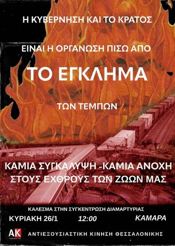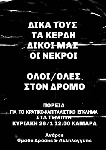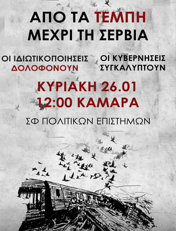 Κυριακή 26/1 12:00 - Καμάρα, στηρίζουμε την συγκέντρωση για το κρατικό έγκλημα των Τεμπων.