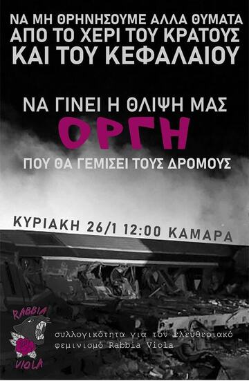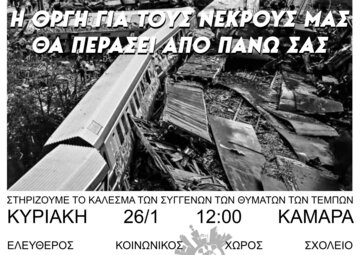 Η δικαίωση των αδερφών μας και η στήριξη των συγγενών τους είναι υπόθεση που μας αφορά όλους/ες και ό,τι είναι να γίνει θα επιτευχθεί με την δική μας αλληλεγγύη, αλληλοβοήθεια και την ενεργό παρουσία. Κι αν έτσι έχουν τα πράγματα, χωρίς τον άμεσο και ενεργό κοινωνικό έλεγχο στην οργανωμένη ζωή και στα μέσα που διαθέτει όπως ο σιδηρόδρομος, πάντα θα βρισκόμαστε αντιμέτωποι/ες με το οργανωμένο έγκλημα ενός πολιτικού και οικονομικού συστήματος που αναπτύσσεται λεηλατώντας και αναλώνοντας ανθρώπους και φύση.