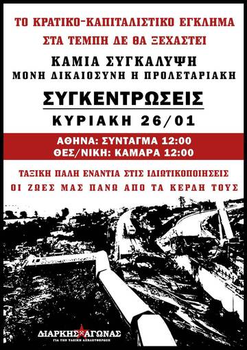 ΚΑΛΟΥΜΕ ΣΤΙΣ ΣΥΓΚΕΝΤΡΩΣΕΙΣ ΠΟΥ ΘΑ ΠΡΑΓΜΑΤΟΠΟΙΗΘΟΎΝ ΚΥΡΙΑΚΉ 26/01 ΣΤΙΣ 12ΜΜ: Αθήνα - Πλατεία Συντάγματος & Θεσσαλονίκη - Καμάρα