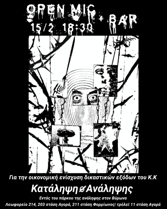 Open mic Χρονικά Δυστοπίας για την οικ. ενίσχυση δικαστικών εξόδων του Κ.Κ.