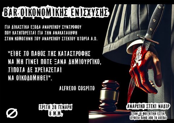 Bar οικονομικής ενίσχυσης για δικαστικά έξοδα αναρχικού συντρόφου