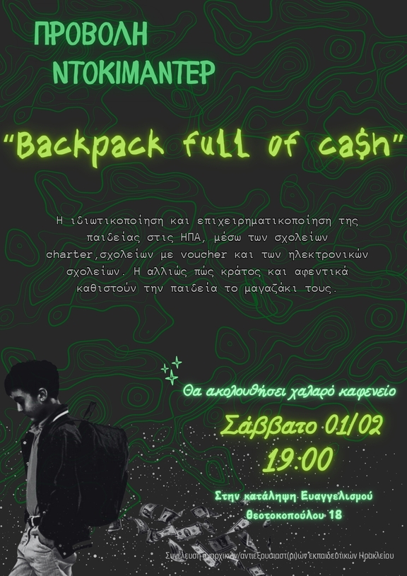 Προβολή Ντοκιμαντέρ "Backpack full of ca$h"