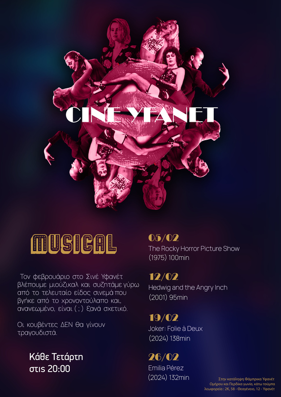 Τον Φεβρουάριο στο σινέ Υφανέτ βλέπουμε μιούζικαλ και συζητάμε γύρω από το τελευταίο είδος σινεμά που βγήκε από το χρονοντούλαπο και,ανανεωμένο, είναι ( ; ) ξανά σχετικό.