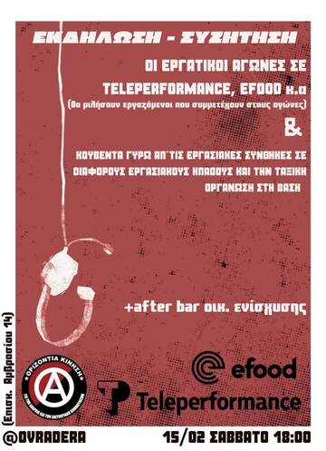 Εκδήλωση - Συζήτηση: Ενημέρωση γύρω από τους εργατικούς αγώνες σε Teleperformance και efood (από εργαζόμενους που συμμετέχουν στους αγώνες).