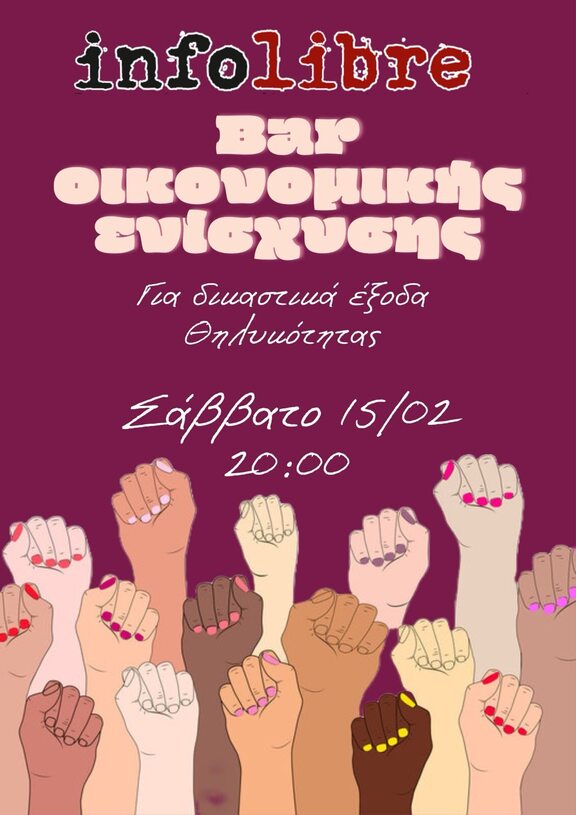 Σας προσκαλούμε σε μπαρ για την οικονομική ενίσχυση θυληκότητας ενόψει δικαστηρίου