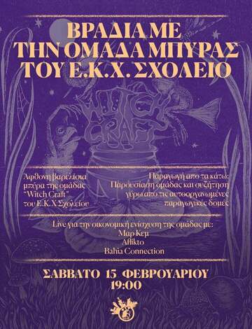 Η ομάδα μπύρας του ΕΚΧ Σχολείο, WitchCraft, βρίσκεται σε λειτουργεία απο το 2022, ο χαρακτήρας της ομάδας ορίζεται απο την προσπάθεια μας να φέρουμε είς πέρας μια πολιτική και κοινωνική δυναμική η οποία και ενέχει τα βασικά χαρακτηριστικά της αλληλεγγύης, της αυτοοργάνωσης και του τρόπου ζωής που προσπαθούμε και σχηματίζουμε.
