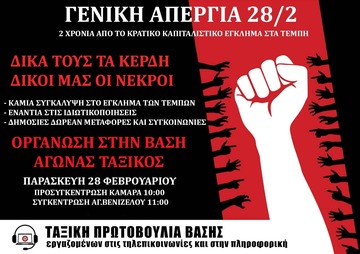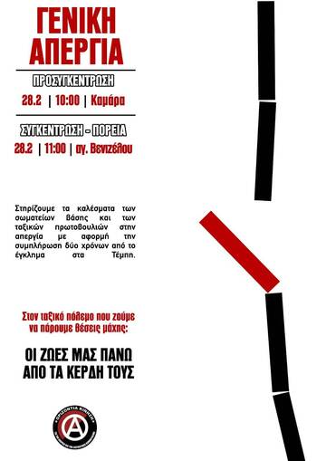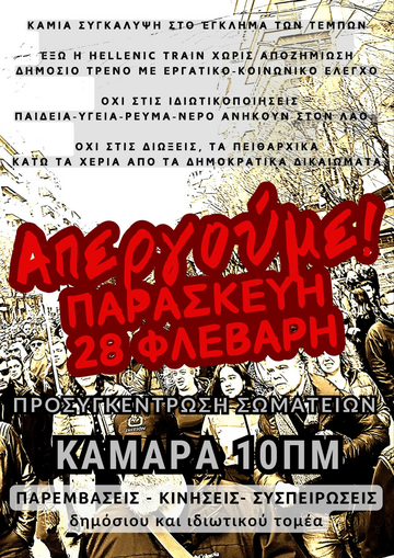 Γενικη απεργία 28/2 - Για το κρατικό έγκλημα στα Τέμπη