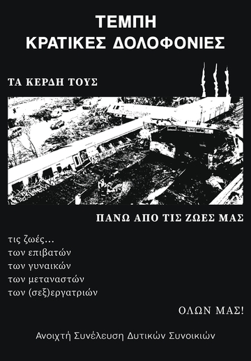 Τίποτα άλλο δεν χρειάζεται για να καταστεί σαφές ότι οι ιδιωτικοποίησεις σκοτώνουν, ότι το ξεπούλημα σιδηροδρομικών γραμμών και υποδομών σε ιδιώτες που βγάζουν λεφτά στις πλάτες μας μας δολοφονεί, ότι η πολιτική της απελευθέρωσης των αγορών που προτάσσει το κέρδος των λίγων πάνω απ την ζωή μας οδηγεί σε "Τέμπη".