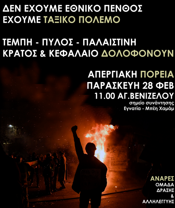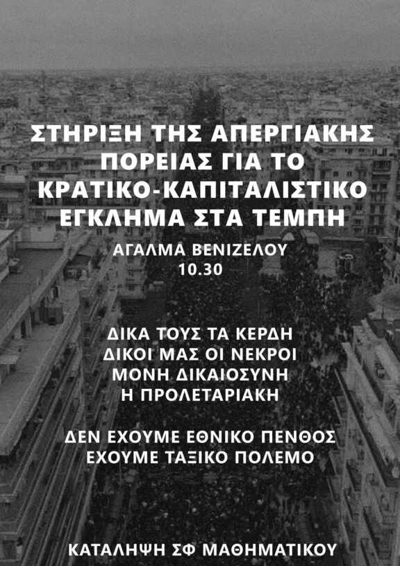 Απεργιακή πορεία για το κρατικό-καπιταλιστικό έγκλημα στα Τέμπη, Παρασκευή 28/2, Άγαλμα Βενιζέλου 11:00