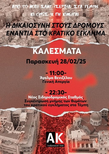 ✊🏼Όλοι και όλες στην Απεργία για τα δύο χρόνια από το κρατικό και καπιταλιστικό έγκλημα στα Τέμπη, Παρασκευή 28/2: