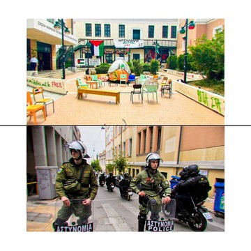 Ως συνέλευση "Φοιτητές, φοιτήτριες, φοιτητά με την Παλαιστίνη" παρόλη την εκκένωση της κατάληψης και των κατασταλτικών μεθοδεύσεων του κράτους τις επόμενες ημερες, συνεχίσαμε να υπάρχουμε σε πανεπιστήμια στην Αθήνα και να δρούμε ενάντια στη συνεργασία των ελληνικών ιδρυμάτων με το Ισραήλ. Διακόψαμε μαζί με άλλες συνελεύσεις την ομιλία του πρύτανη Χατζηγεωργίου στην πολεμοκίνητη φιέστα της "Βραδιάς του Ερευνητή" στο ΕΜΠ, παρεμβήκαμε στο φεστιβάλ - ξέπλυμα "WeAreUoA" στα προπύλαια, στοχοποιήσαμε καθηγητ(ρι)ές και διοικήσεις, οπως στην περίπτωση της σιωνίστριας Βάνας Νικολαΐδου και του τμήματος φιλοσοφίας ΕΚΠΑ που ανοίγουν την πόρτα για τη σιωνιστική ρητορική στα πανεπιστήμια, κατεβήκαμε στον δρόμο μαζί με άλλες συνελεύσεις αλληλεγγύης στην Παλαιστινιακή αντίσταση.