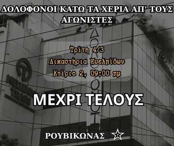 Για τη σύλληψη 25 μελών του Ρουβίκωνα για την παρέμβαση στην ταράτσα της Hellenic Train και κάλεσμα στα δικαστήρια της Ευελπίδων (Τρίτη, 4/3, κτίριο 2, 09:00)