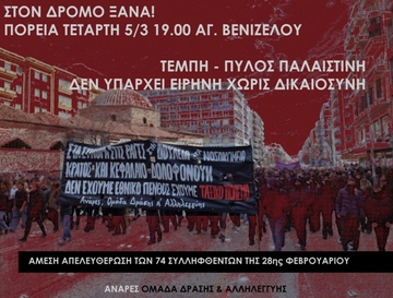 Κάλεσμα σε συγκέντρωση - πορεία: Τετάρτη 5/3, Άγαλμα Βενιζέλου.