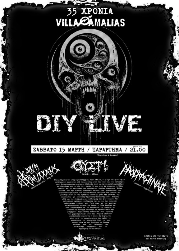 diy live για τα 35 χρόνια Villa Amalias το σάββατο 15 μάρτη στις 21.00 στο Παράρτημα…