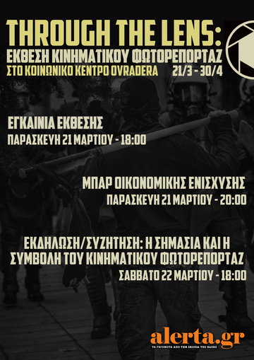 Με βάση όλα τα παραπάνω, αποφασίσαμε την διοργάνωση μιας Έκθεσης Κινηματικού Φωτορεπορτάζ στον χώρο του Κοινωνικού Κέντρου Ovradera (Επισκοπου Αμβροσιου 14) όπου και στεγάζεται το Alerta.gr στην Θεσσαλονίκη. Στην έκθεση αυτή φιλοδοξούμε να αναδείξουμε μια πληθώρα από εικόνες και στιγμές αγώνα μέσα από τους φακούς των διάφορων κινηματικών φωτορεπόρτερ (ή φωτορεπόρτερ που βρίσκονται κοντά στο κίνημα).