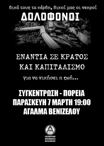 ✊🏼Όλοι και όλες στις συγκεντρώσεις για το κρατικό - καπιταλιστικό έγκλημα των Τεμπών