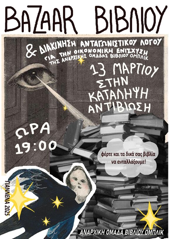Bazaar έντυπου υλικού για ενίσχυση της αναρχικής ομάδας βιβλίου Ομπλίκ