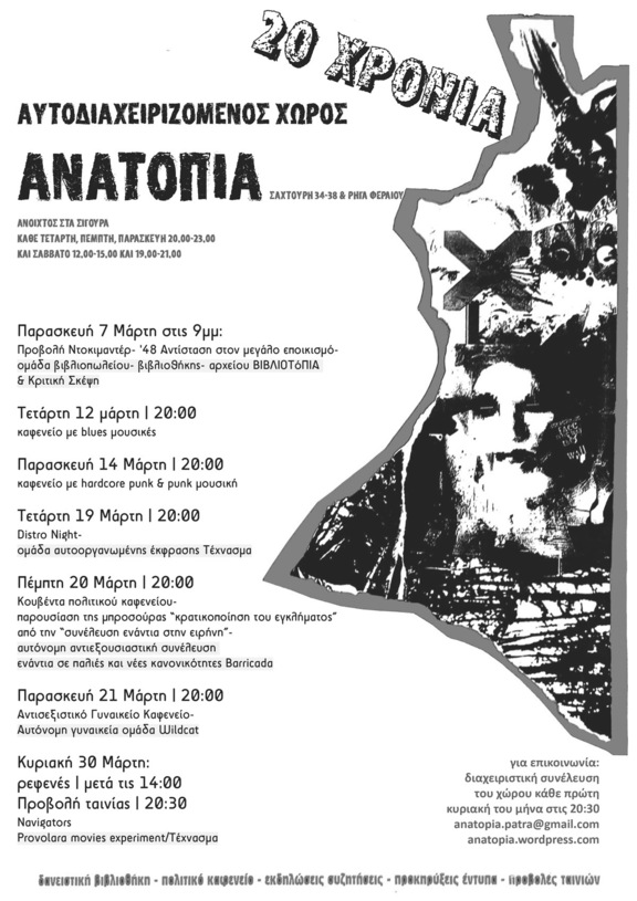 Πέμπτη 20 μάρτη στις 20.00: Κουβέντα πολιτικού καφενείου - παρουσίαση της μπροσούρας «η κρατικοποίηση του εγκλήματος» (συνέλευση ενάντια στην ειρήνη) από την αυτόνομη αντιεξουσιαστική συνέλευση ενάντια σε παλιές και νέες κανονικότητες Barricada