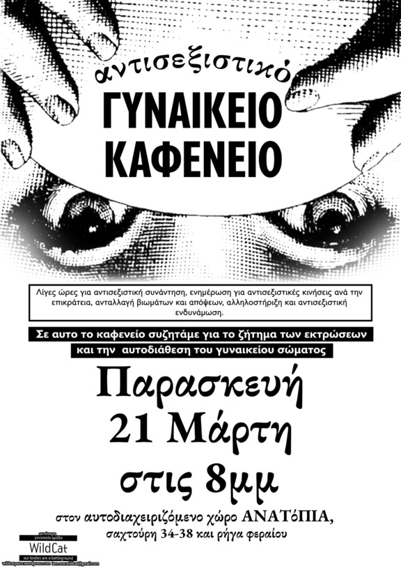 αντισεξιστικό ΓΥΝΑΙΚΕΙΟ ΚΑΦΕΝΕΙΟ την παρασκευή 21 μάρτη στις 20.00…