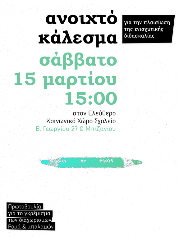 Σάββατο 15 Μάρτη, 15:00, στον ΕΚΧ Σχολείο