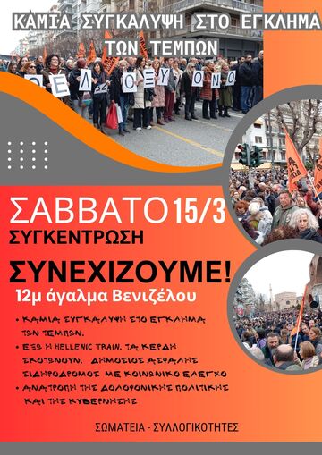 Συγκέντρωση σωματείων και φορέων για το έγκλημα των Τεμπών