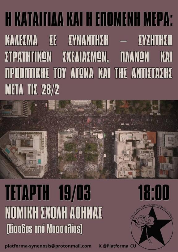 ΚΑΛΕΣΜΑ ΣΕ ΣΥΝΑΝΤΗΣΗ-ΣΥΖΗΤΗΣΗ ΣΤΡΑΤΗΓΙΚΩΝ ΣΧΕΔΙΑΣΜΩΝ, ΠΛΑΝΩΝ ΚΑΙ ΠΡΟΟΠΤΙΚΗΣ ΤΟΥ ΑΓΩΝΑ ΚΑΙ ΤΗΣ ΑΝΤΙΣΤΑΣΗΣ ΜΕΤΑ ΤΙΣ 28/2