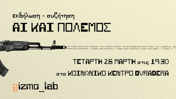 Τετάρτη 26/3 στις 19:30: Ανοιχτή συζήτηση: "AI και πολεμος", από το gizmo_lab
