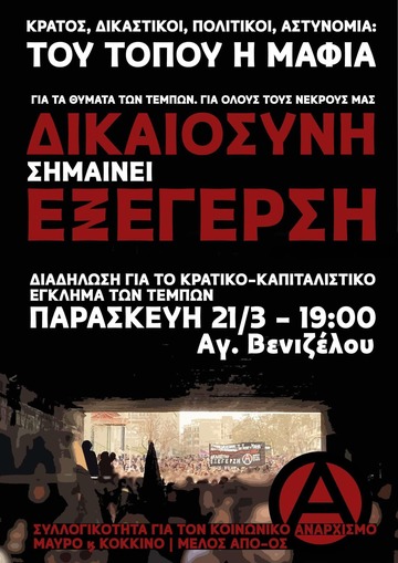 Σήμερα 21/3 στηρίζουμε την πορεία ενάντια στην συγκάλυψη του κρατικού καπιταλιστικού εγκλήματος των Τεμπών στις 19:00 στο Άγαλμα Βενιζέλου