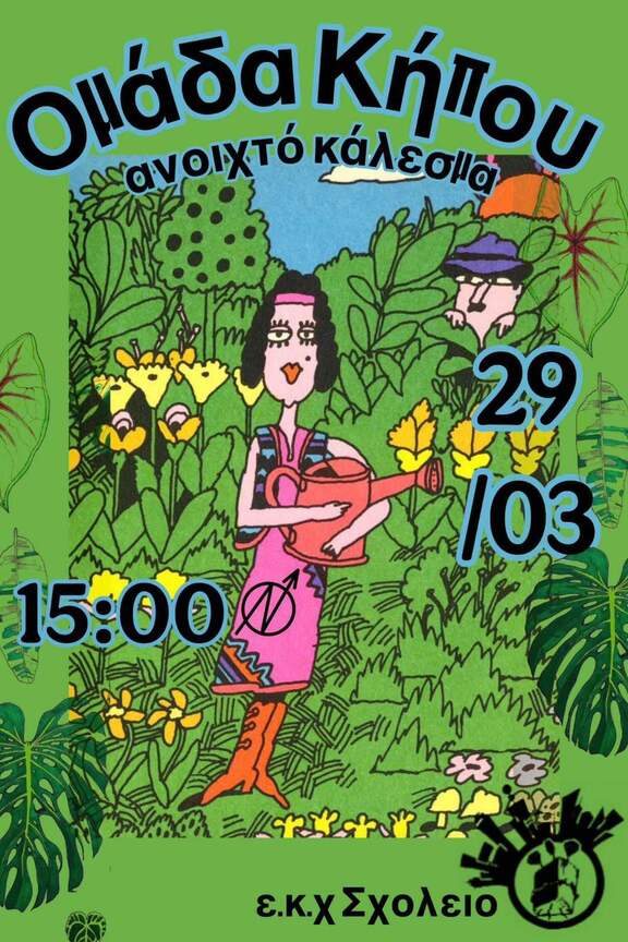Με πρόφαση να φυτεψουμε αρωματικά φυτά και βότανα στον χώρο του Σχολείου κάνουμε άνοιγμα για τη δημιουργία της ομάδας κήπου. Θέλουμε να δημιουργήσουμε τις κατάλληλες συνθήκες για πειραματισμό, ανταλλαγή γνώσεων, εμπειριών και πρακτικών, να σχεδιάσουμε και να ονειρευτούμε. Με πρώτη εκδήλωση για τη δημιουργία της ομάδας και ανταλλαγή ιδεών το Σάββατο 29/3 στις 15.00, ώστε να εδραιωσουμε ως σταθερή μέρα κάθε Σάββατο. Ένας από τους σκοπούς είναι κάθε Σάββατο να υπάρχει μια θεματική για συζήτηση και ταυτόχρονα να κάνουμε και μερικές δουλίτσες στις γλάστρουλες μας. Η παραγωγή φαγητού είναι από τις πιο σημαντικές πολιτικές και κοινωνικές δράσεις και ήρθε η ώρα να πάρουμε αυτή τη γνώση στα λασπωμένα χέρια μας στον χώρο του Ελεύθερου Κοινωνικού Χώρου 'Σχολείο'. Μέσα απο ανοιχτούς κατελειμένους χώρους να βαλούμε λίγο πράσινο στο ατελείωτο γκριζο της πόλης μας με τους δικούς μας οριζόντιους όρους !
