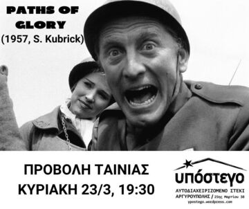 Την Κυριακή 23.3.2025 προβολή της κλασικής αντιπολεμικής ταινίας «Paths of Glory» (Σταυροί στο Μέτωπο, S. Kubrick, 1957)