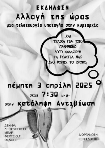 Εκδήλωση/συζήτηση: "Αλλαγή της ώρας: μια τελετουργία υποταγής στην κυριαρχία"