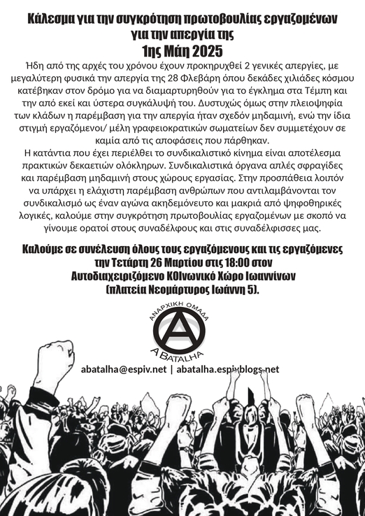 Κάλεσμα για την συγκρότηση πρωτοβουλίας εργαζομένων για την απεργία της 1ης Μάη