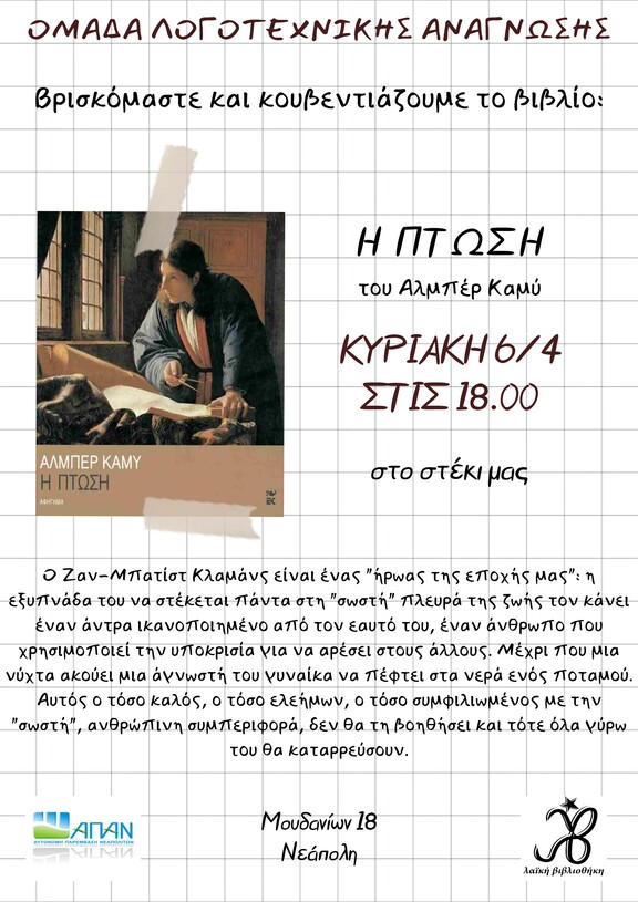 Ομάδα λογοτεχνικής ανάγνωσης ΑΠΑΝ - ΛΒ: "Η πτώση" του Αλμπέρ Καμύ