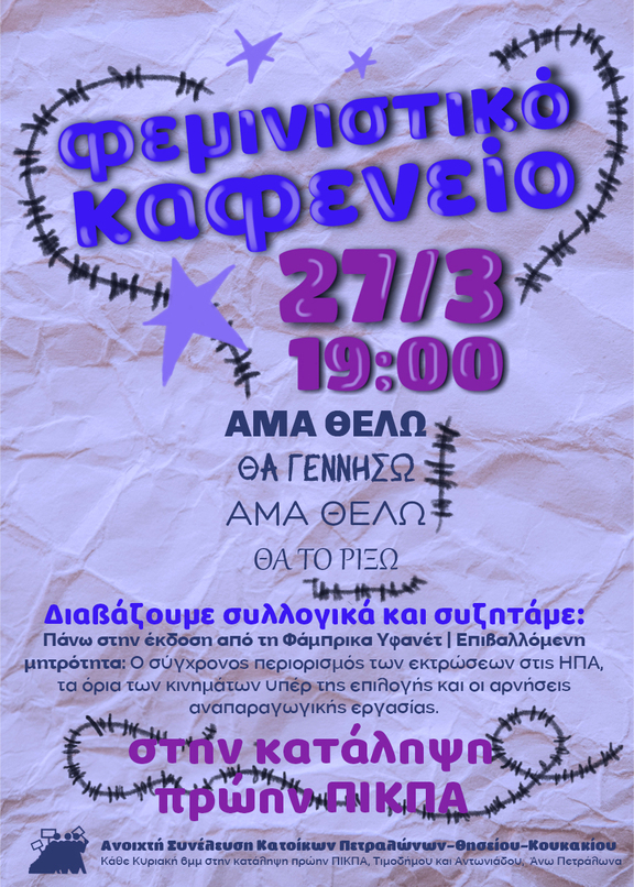 Φεμινιστικό καφενείο στην κατάληψη πρώην ΠΙΚΠΑ την Πέμπτη 27 Μαρτίου και ώρα 19:00!