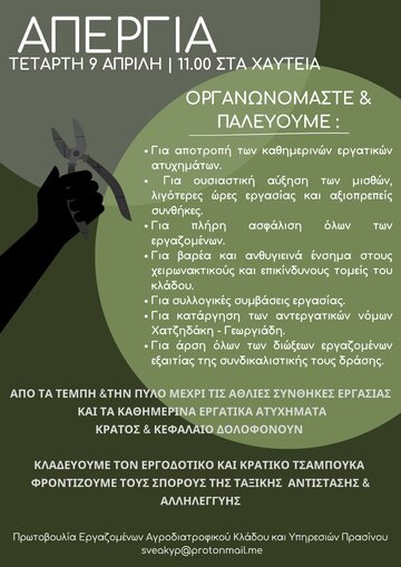 ΑΠΕΡΓΙΑ 9 ΑΠΡΙΛΙΟΥ 11:00 ΧΑΥΤΕΙΑ
