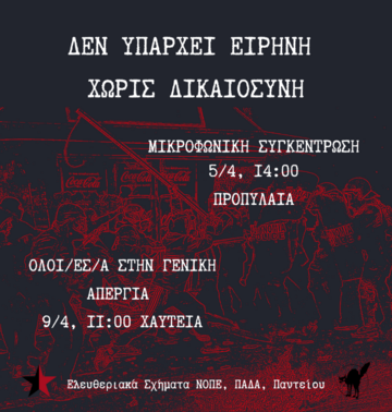 Όλοι/ες στους δρόμους σε κάθε συγκέντρωση και πορεία ενάντια στη συγκάλυψη του εγκλήματος.