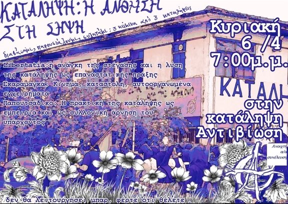 Στη κατάληψη αντιβίωση 06/04 στις 7:00 , στον χώρο δεν θα λειτουργήσει μπαρ φέρτε ότι θέλετε