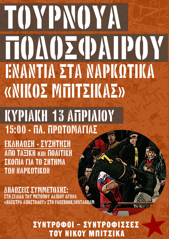 Μέσα από αυτό το πολιτικό - αθλητικό γεγονός, θέλουμε να τιμήσουμε τον σύντροφο μας, να αναστοχαστούμε και να προχωρήσουμε μπροστά, για αυτό έπειτα από την λήξη του τουρνουά, θα ακολουθήσει συζήτηση από ταξική πολιτική σκοπιά σε σχέση με το ζήτημα των ναρκωτικών.