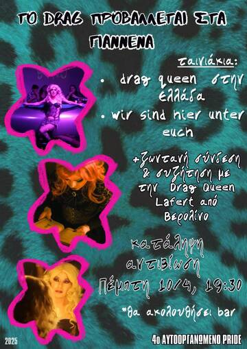 Για την πρώτη μας εκδήλωση για φέτος προβάλλουμε 2 ταινίες μικρού μήκους από 2 drag queens :