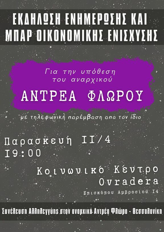 Συνέλευση Αλληλεγγύης στον αναρχικό Αντρέα Φλώρο - Θεσσαλονίκη