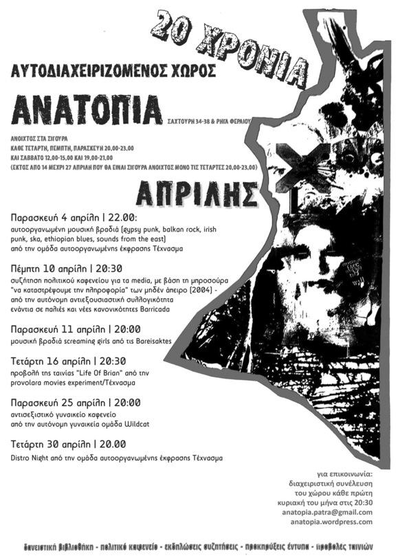 πρόγραμμα εκδηλώσεων Απρίλη στον αυτοδιαχειριζόμενο χώρο ΑΝΑΤόΠΙΑ
