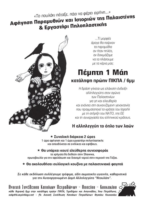 Αφήγηση Παραμυθιών και Ιστοριών της Παλαιστίνης & Εργαστήρι Πηλοπλαστικής / Πέμπτη 1 Μάη / 6μμ / κατάληψη πρώην ΠΙΚΠΑ