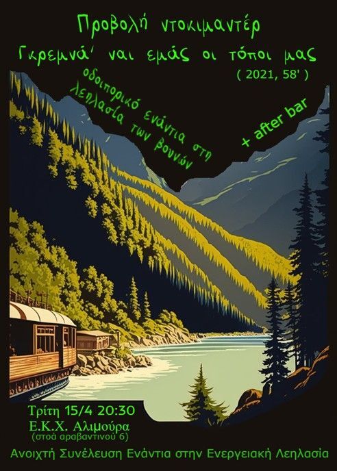 θα γίνει προβολή του ντοκιμαντέρ "Γκρεμνά' ναι εμάς οι τόποι μας", ένα οδοιπορικό ενάντια στην λεηλασία των βουνών.
